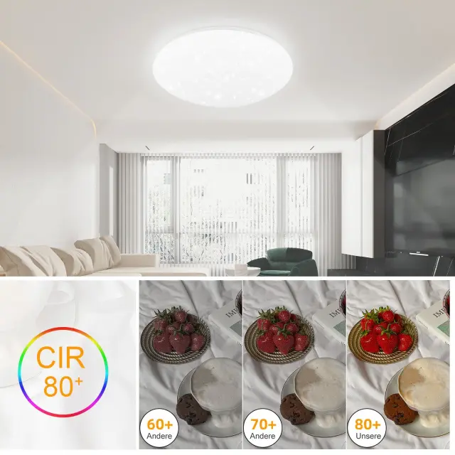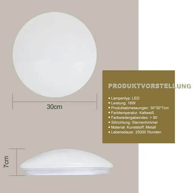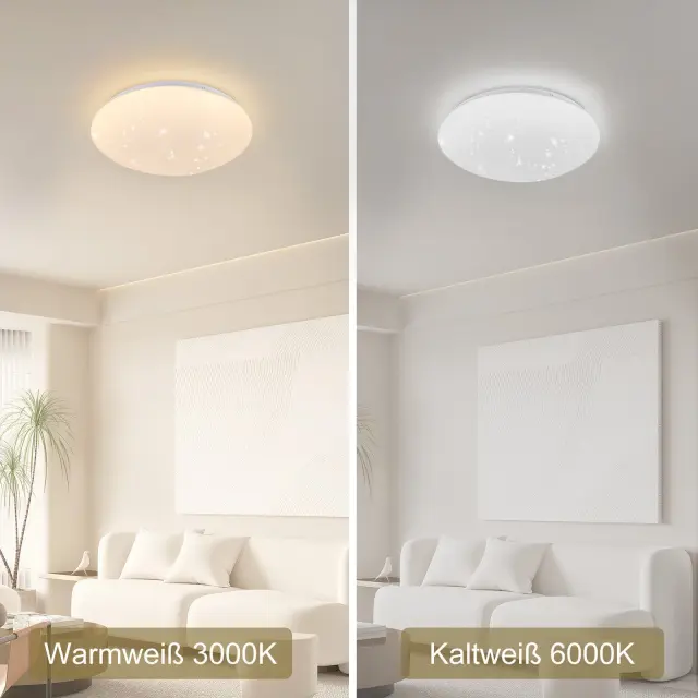 NETTLIFE LED stropna svetilka za spalnico 30 cm 6000K zvezdnato nebo okrogla 18 W IP44 kopalniška svetilka za dnevno sobo, otroško sobo, kuhinjo