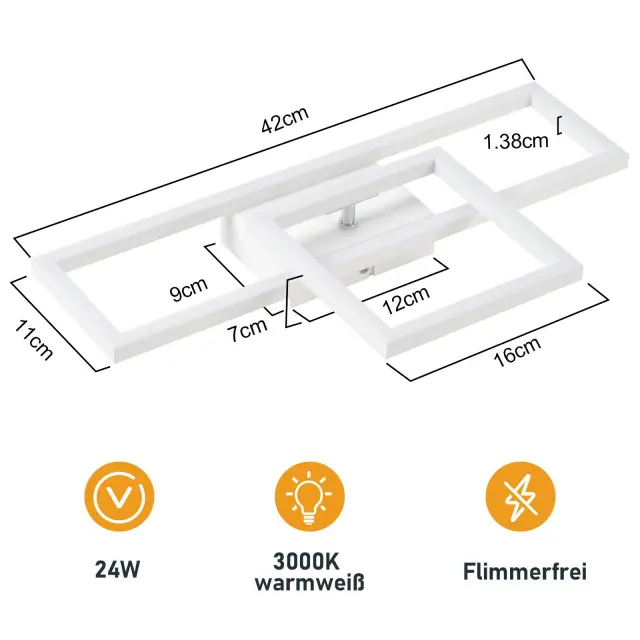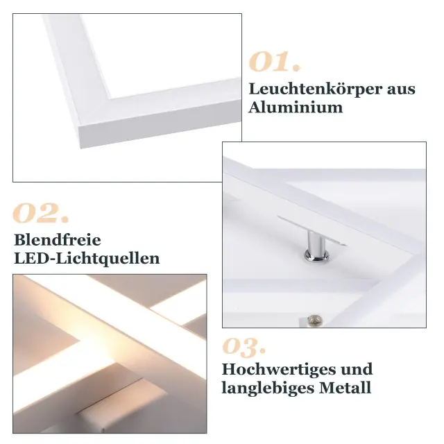 NETTLIFE LED stropna svetilka za dnevno sobo, 20W, moderna kuhinjska svetilka, toplo bela, kvadratna, bela