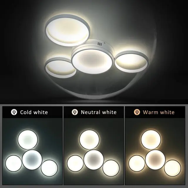 NETTLIFE LED stropna svetilka z zatemnilno daljinsko upravljanje 52W moderna stropna svetilka s 4 kovinskimi obroči