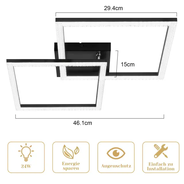 NETTLIFE LED stropna svetilka za dnevno sobo črna 3000K toplo bela moderna kristalna svetilka za spalnico 24W za kuhinjo, spalnico, hodnik