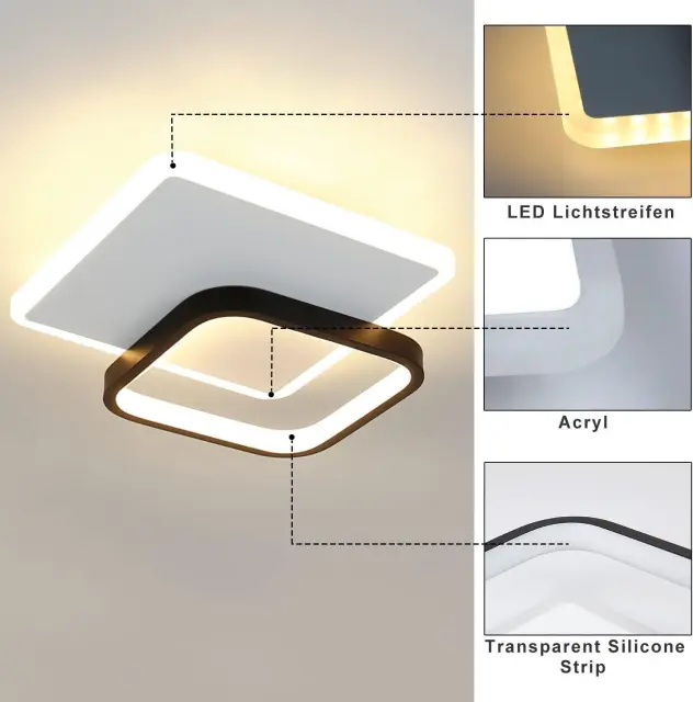 NETTLIFE LED stropna svetilka 3000K 24,5 cm 22 W svetilka za hodnik modernega dizajna kuhinjska svetilka črne barve za spalnico in dnevno sobo