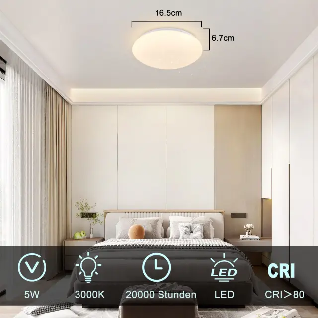 NETTLIFE LED stropna svetilka Spalnica - Kuhinja 5W 3000K Ø 16,5 cm, toplo bela, za hodnik, otroško sobo
