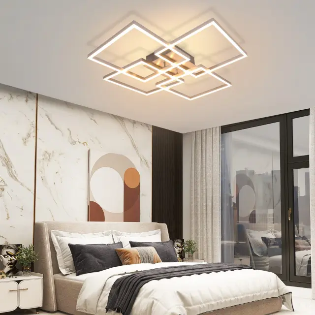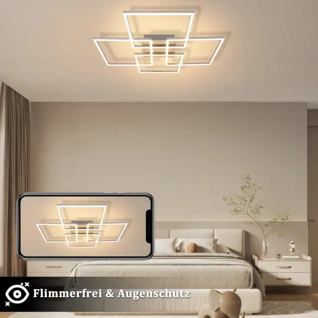NETTLIFE LED stropna svetilka za spalnico, srebrna, zatemnljiva, 64 cm, 36 W, geometrijska, dnevna soba, z daljinskim upravljalnikom