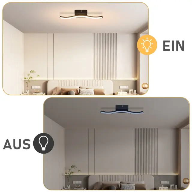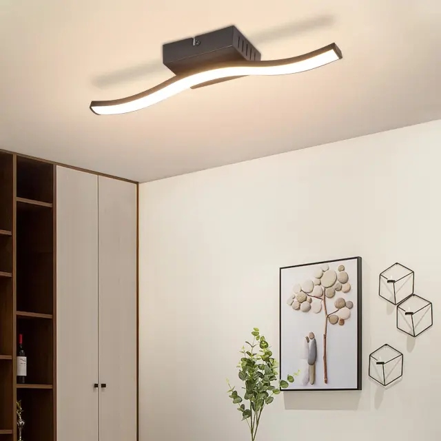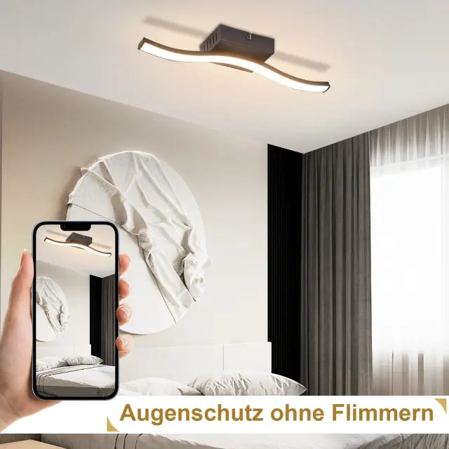 NETTLIFE LED stropna svetilka za spalnico, moderna črna, 6W, valoviti dizajn, 3000K, toplo bela