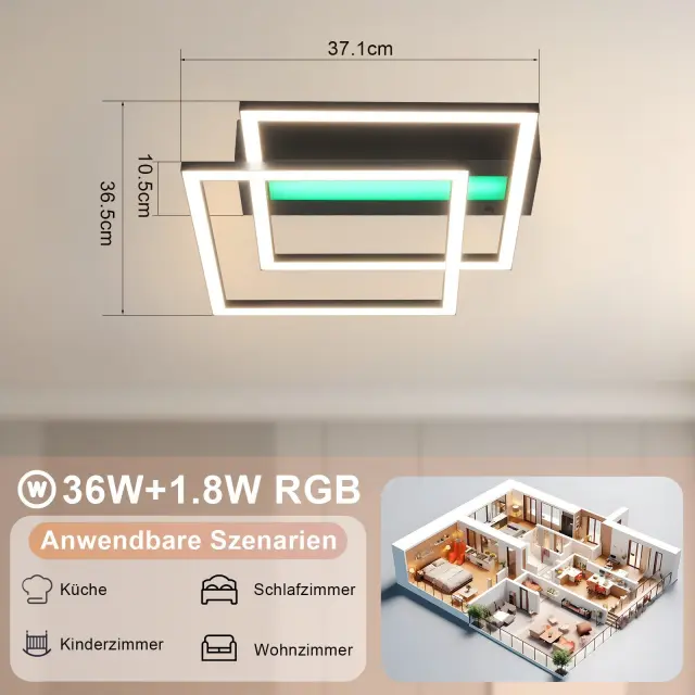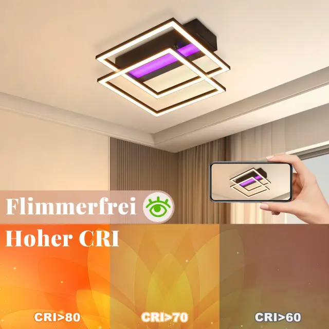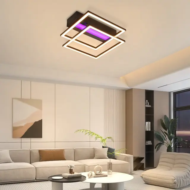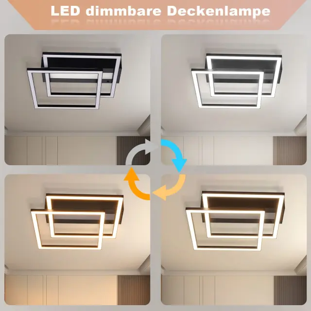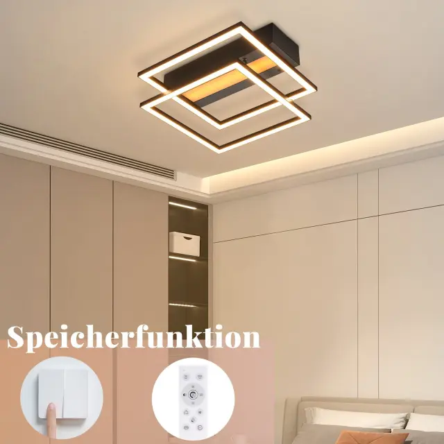 NETTLIFE LED stropna svetilka za dnevno sobo, 2 okvirja, črna, moderna, kvadratna, zatemnljiva, idealna za hodnik