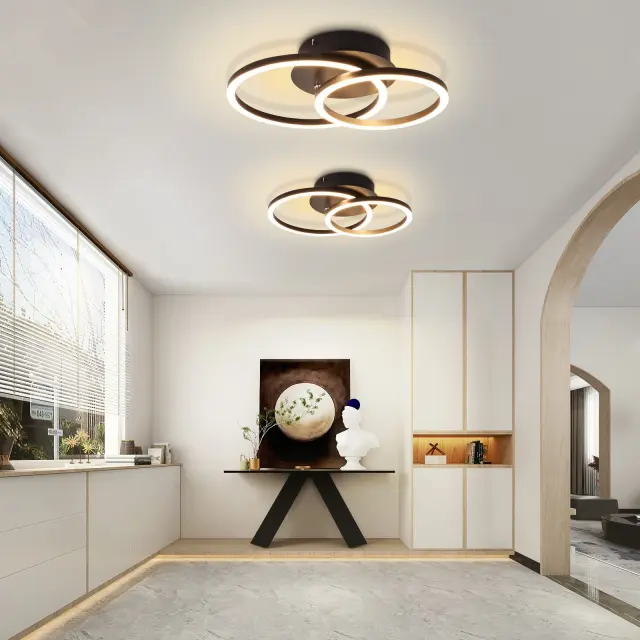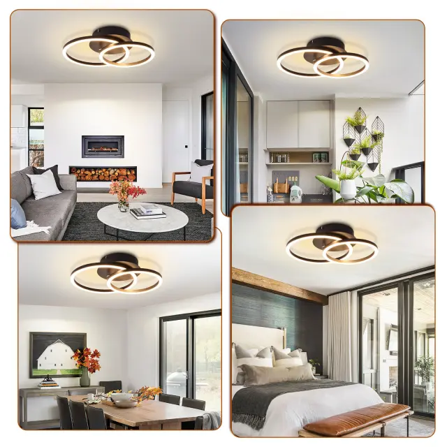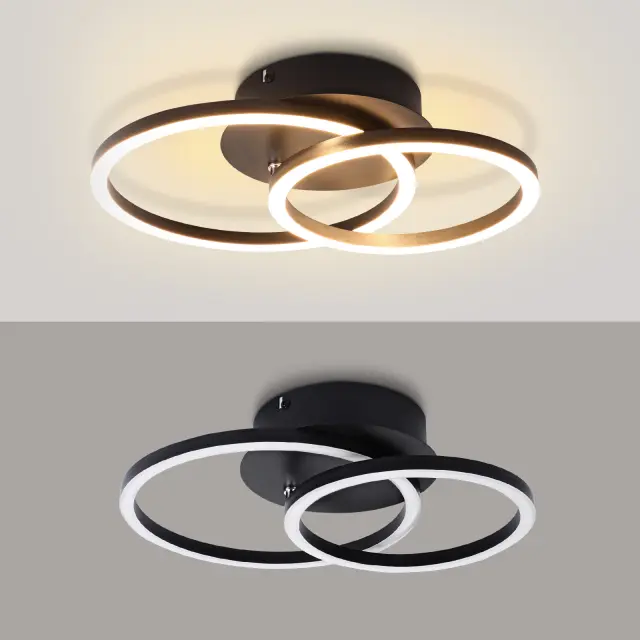 NETTLIFE LED stropna svetilka, 24W, moderna oblika, okrogla, toplo bela, 3000K, črna, 2 obroča