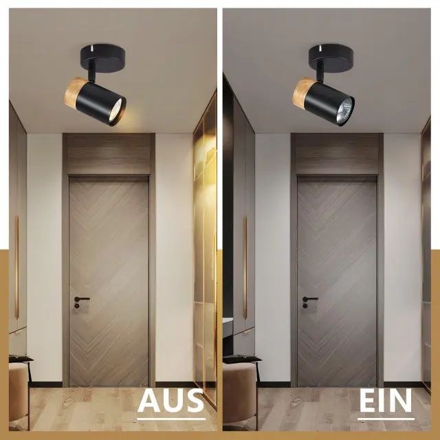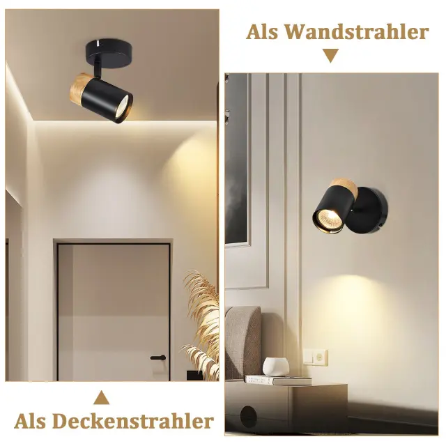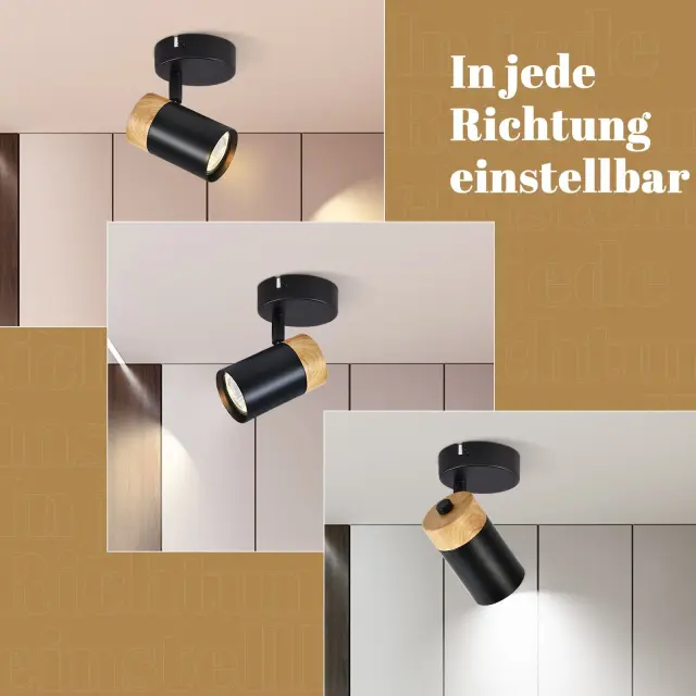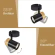 NETTLIFE LED stropna svetilka, lesena, GU10, vrtljiva, 330°, črna, vintage, za notranjost, hodnik, dnevno sobo, spalnico, kuhinjo