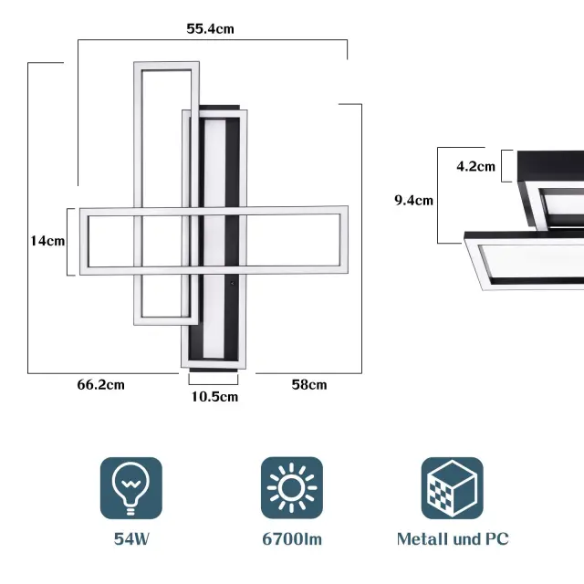NETTLIFE LED stropna svetilka za dnevno sobo, črna, pravokotna, zatemnljiva, moderna oblika