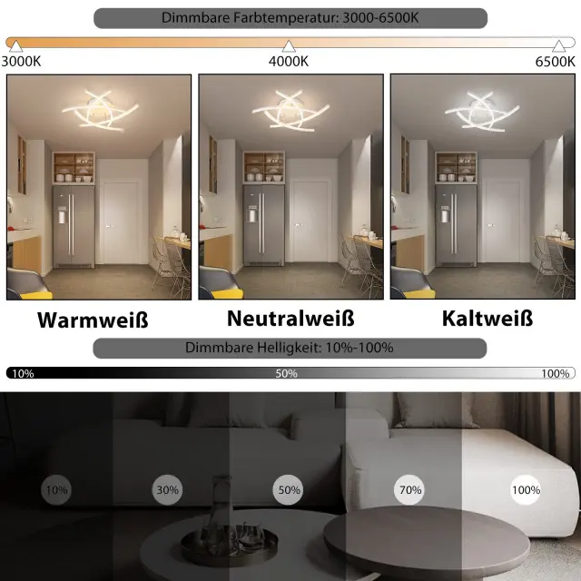 NETTLIFE LED stropna svetilka za spalnico, zatemnljiva, 32 W, moderna, bela, kovinska, z daljinskim upravljalnikom