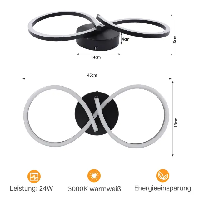 NETTLIFE LED stropna svetilka za dnevno sobo 24W moderna kreativna črna kuhinjska svetilka 3000K toplo bela