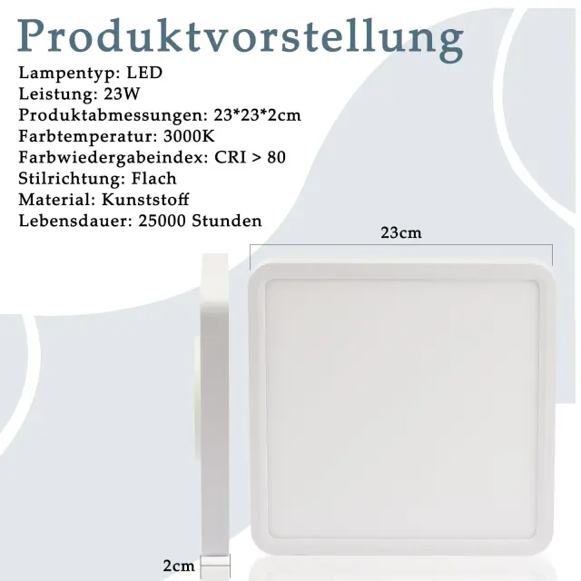 NETTLIFE LED stropna svetilka 23W Spalnica IP44 Toplo bela 23cm Kuhinjska svetilka Kvadratna Kopalniška svetilka Svetilka za hodnik za kuhinjo