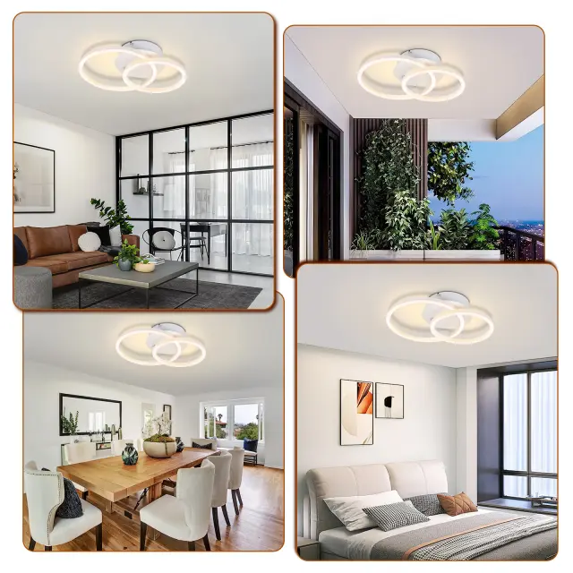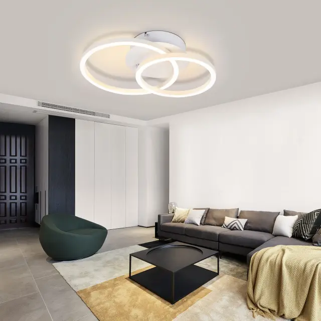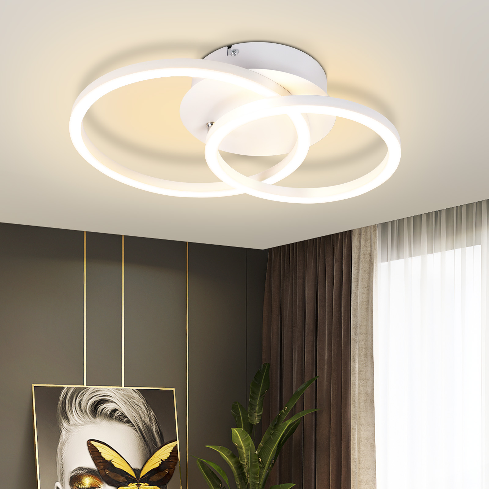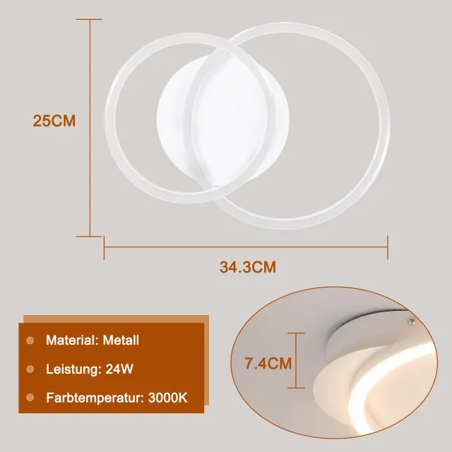 NETTLIFE LED stropna svetilka - bela okrogla stropna svetilka z 2 obročema, moderna oblika, 24 W, 3000 K, toplo bela, za kuhinjo in dnevno sobo