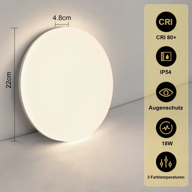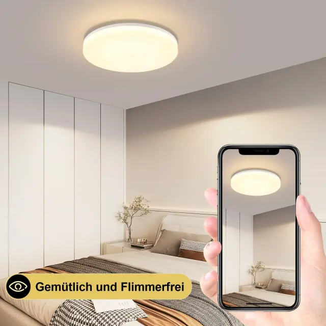 NETTLIFE LED stropna svetilka 18W 22CM okrogla IP54 ravna zatemnilna svetilka za spalnico, kopalnico z daljinskim upravljalnikom za kuhinjo, hodnik