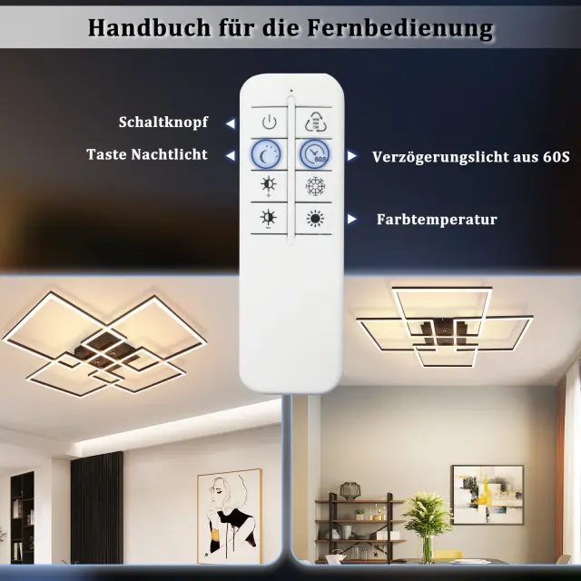 NETTLIFE LED stropna svetilka za dnevno sobo, 72 cm, črna, zatemnljiva z daljinskim upravljalnikom, 48 W, moderna pravokotna oblika