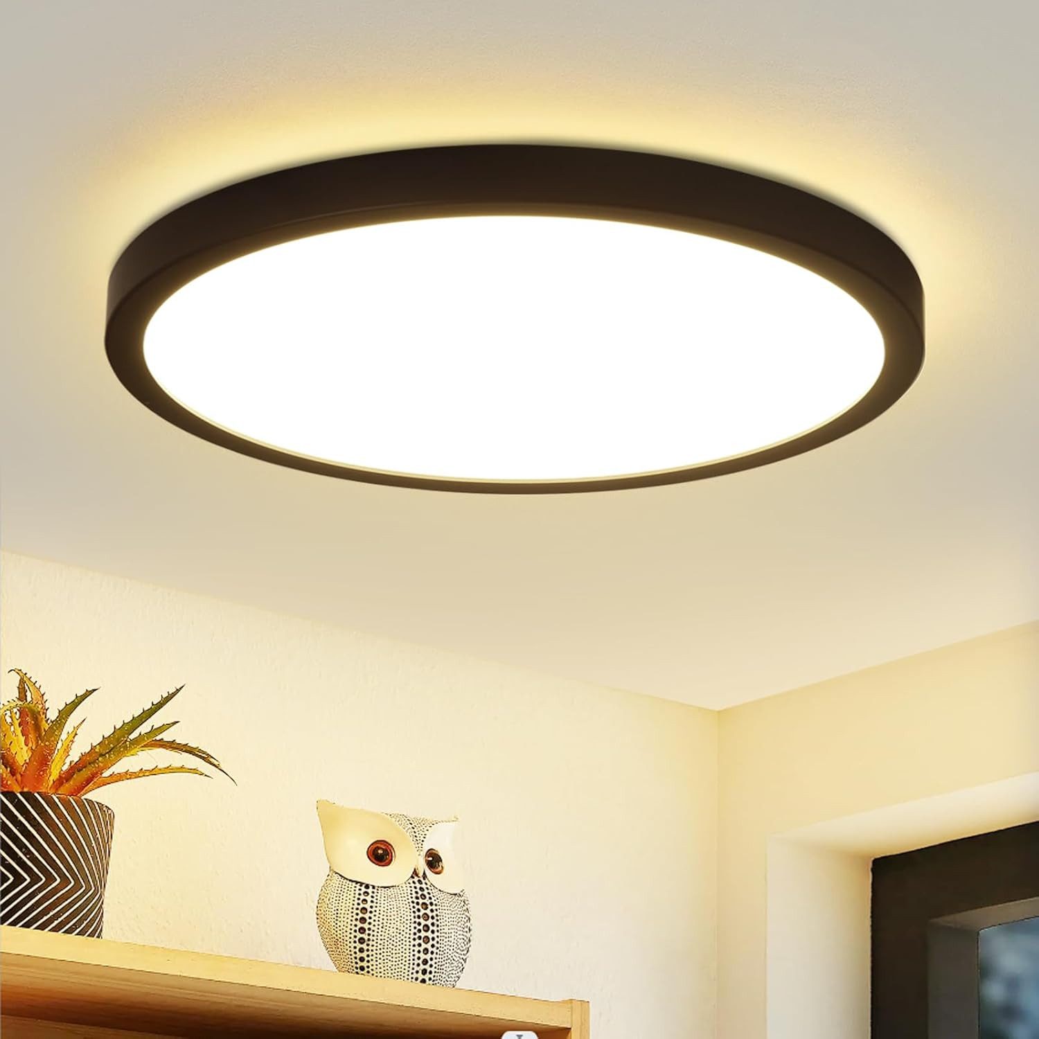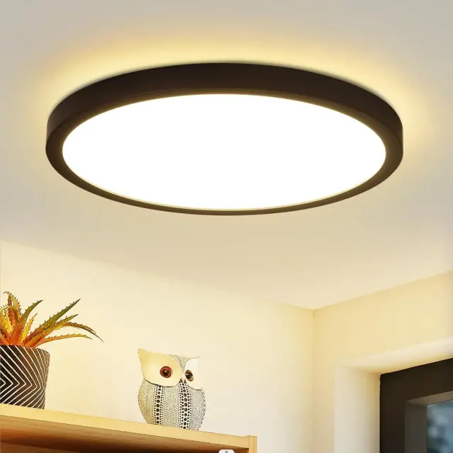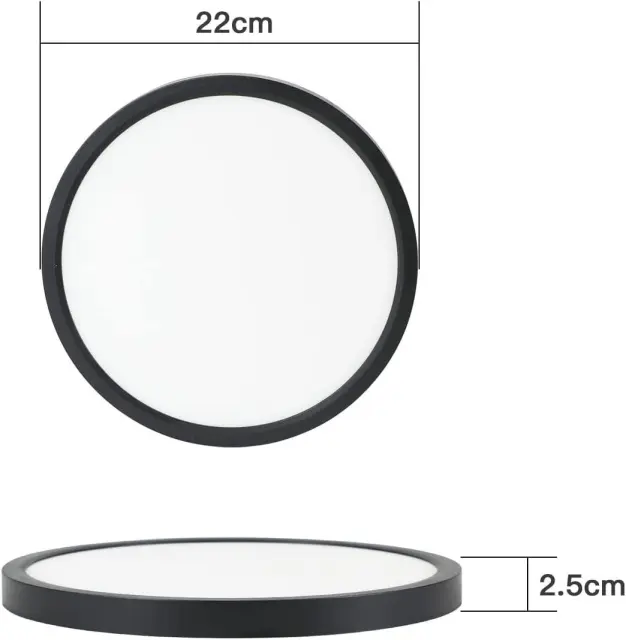 NETTLIFE LED stropna svetilka, ravna stropna svetilka, spalnica, svetilka Ø22cm, kopalniška svetilka, črna, 15W IP44