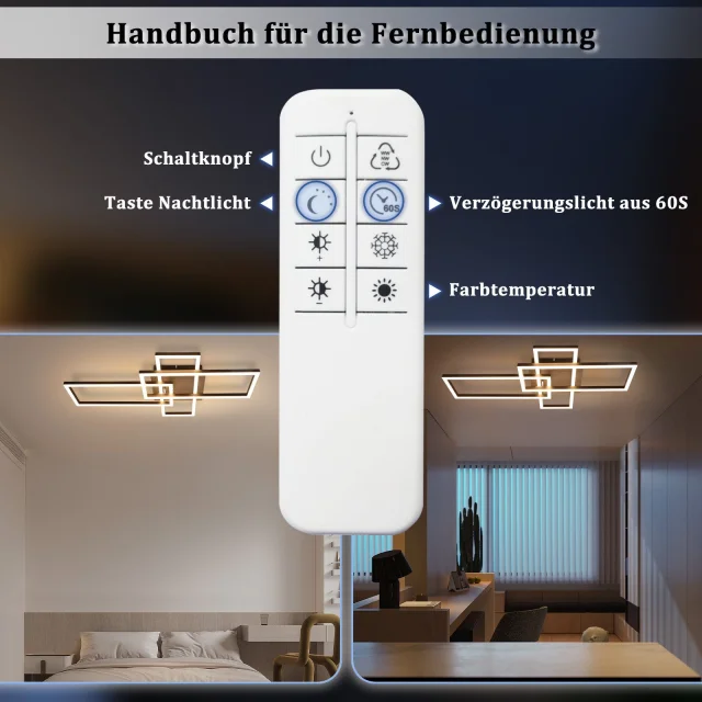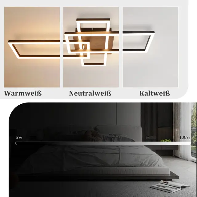 NETTLIFE LED stropna svetilka za spalnico, črn okvir, 64,3 cm, zatemnljiva z daljinskim upravljalnikom, moderna, zatemnljiva