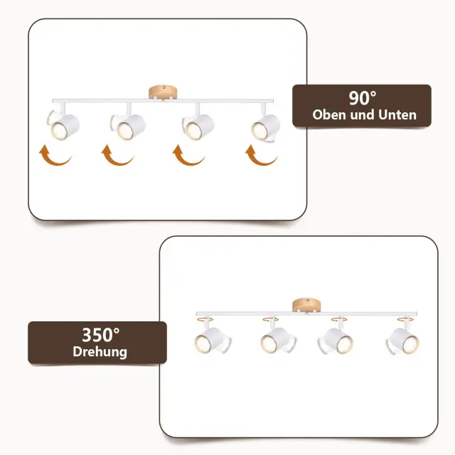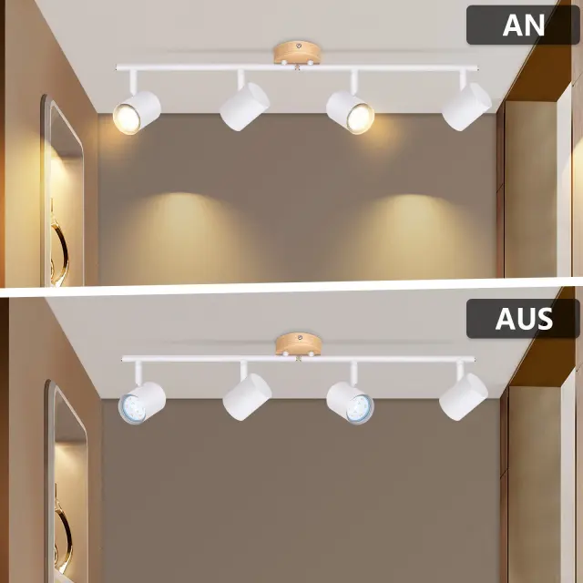 NETTLIFE LED stropna svetilka s 4 plameni - bela stropna svetilka GU10, vrtljiva, stenska svetilka za dnevno sobo, brez žarnice