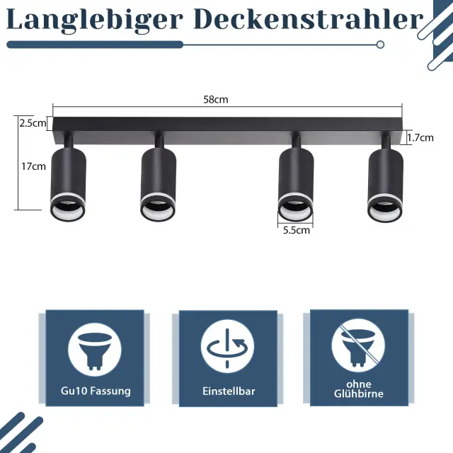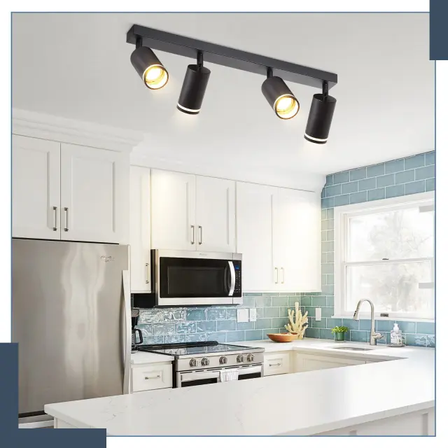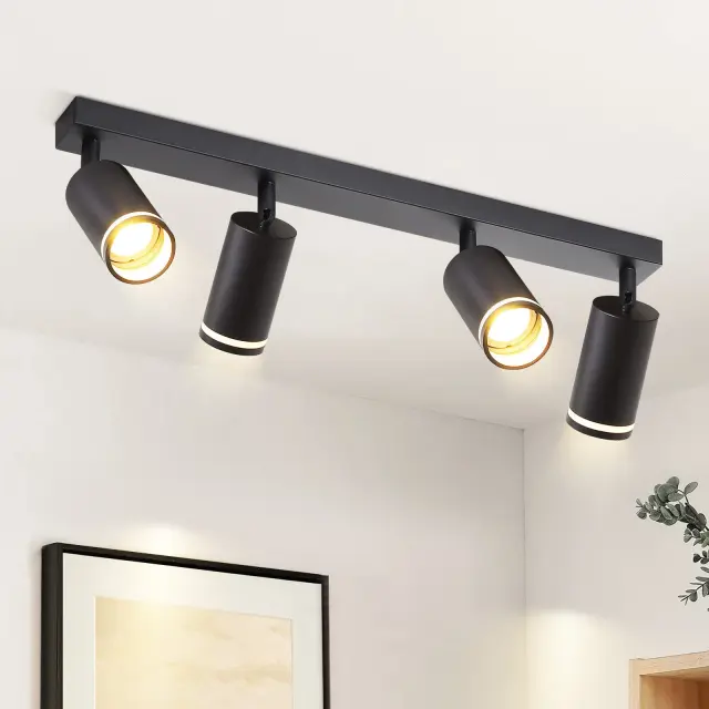 NETTLIFE LED stropna svetilka s 4 plameni, črna stropna svetilka GU10, vrtljiva reflektorska svetilka, lesena stenska svetilka,brez žarnice