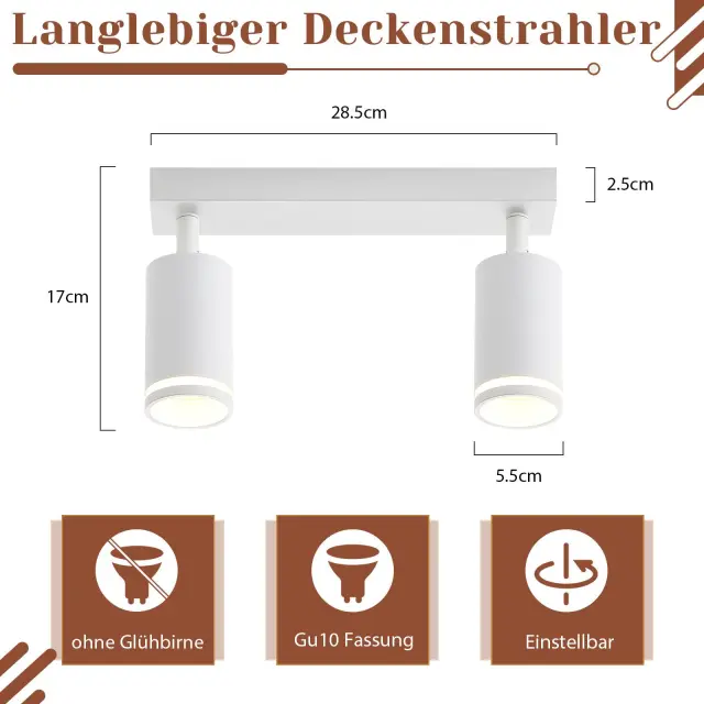 NETTLIFE LED stropna svetilka z 2 plamenoma - bela stropna svetilka GU10, vrtljiva, lesena stenska svetilka, stenski reflektor,brez žarnice