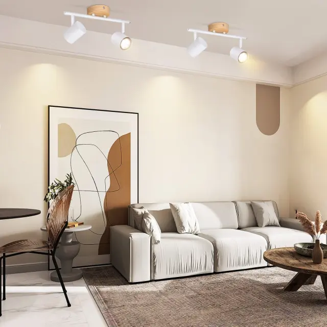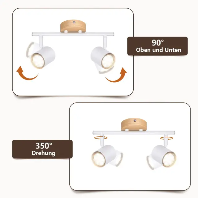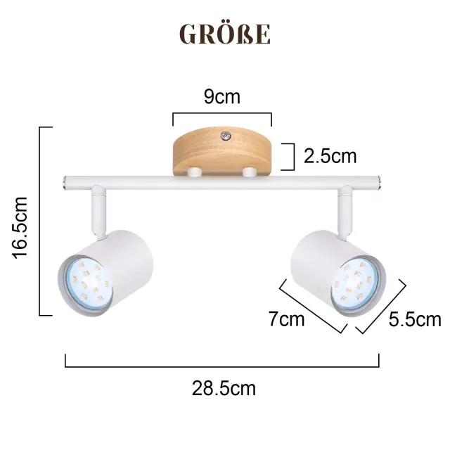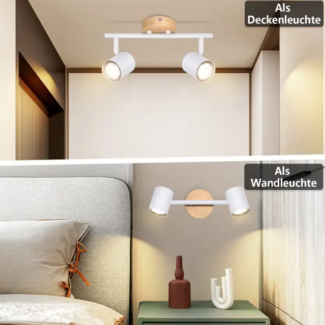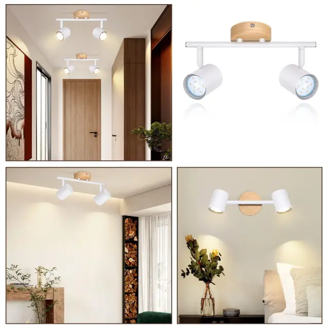 NETTLIFE LED stropna svetilka z 2 plamenoma - bela stropna svetilka GU10, vrtljiva, lesena stenska svetilka, brez žarnice