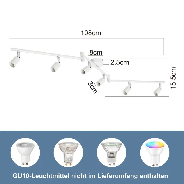 NETTLIFE LED stropna svetilka 6 reflektorjev GU10 - Stropni reflektor Moderna notranja stropna svetilka Bela za dnevno sobo