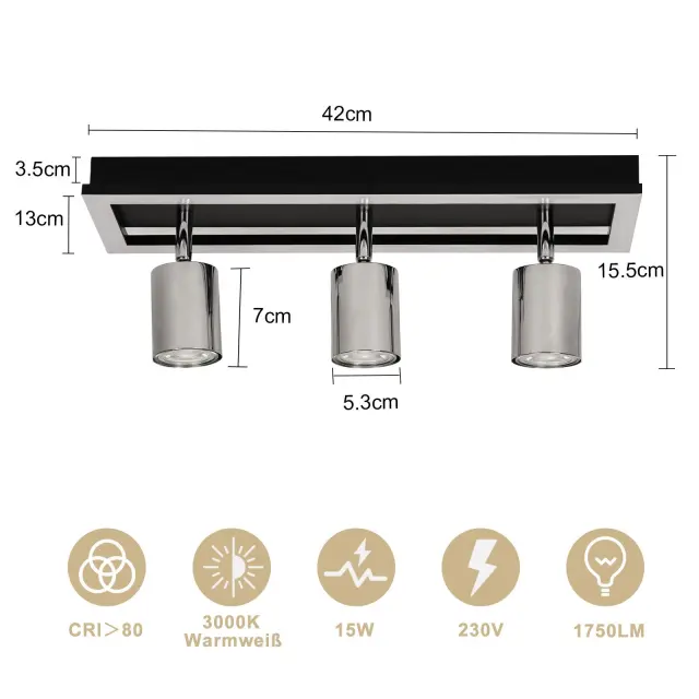 NETTLIFE LED stropna svetilka s 3 plameni, črna, GU10, nastavljiva, 15 W, toplo bela