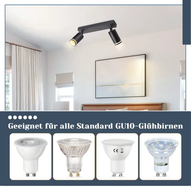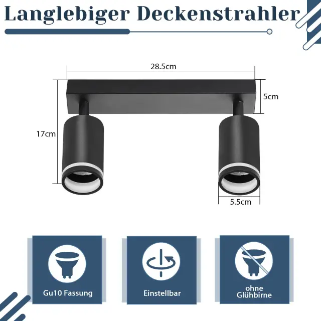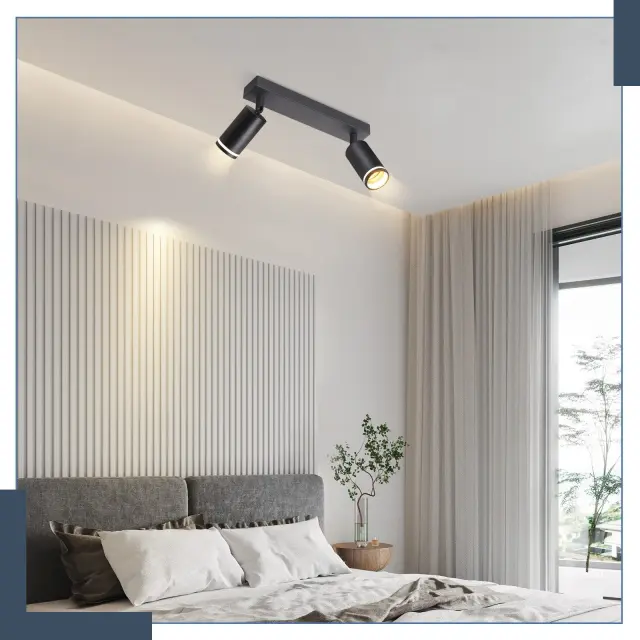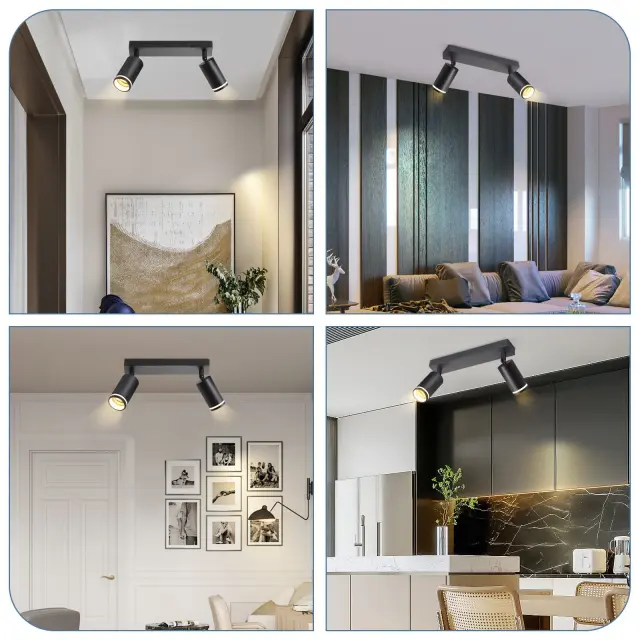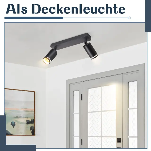 NETTLIFE LED stropna svetilka z 2 plamenoma - črna stropna svetilka GU10, vrtljiva, lesena, stenska svetilka, stenski reflektor,brez žarnice