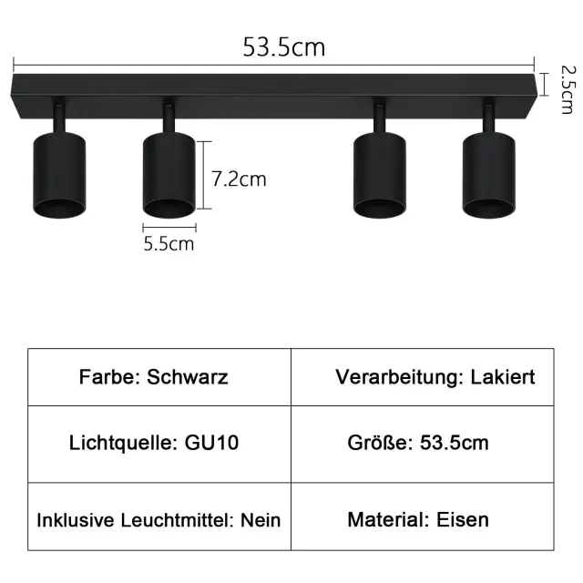 NETTLIFE LED stropna svetilka 4 črni GU10 reflektorji, nastavljiva 350°, moderna svetilka