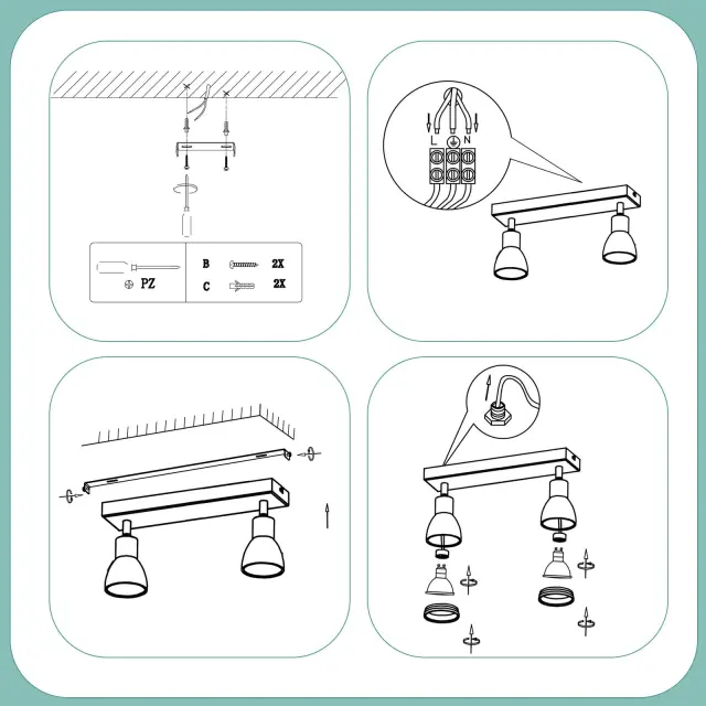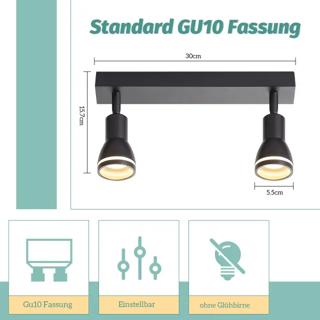 NETTLIFE LED stropna svetilka 2 žarnici črna stropna svetilka za dnevno sobo nastavljiva svetilka GU10 moderna svetilka