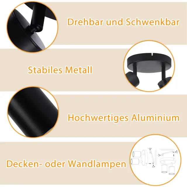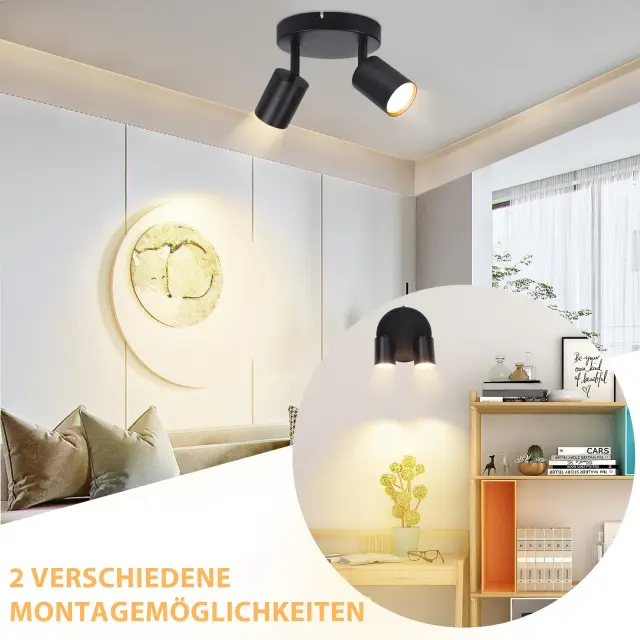 NETTLIFE LED stropna svetilka z 2 lučema, črna, GU10, nastavljiva okrogla, moderna stropna svetilka