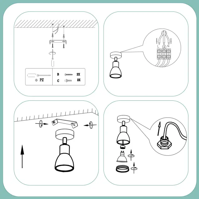 NETTLIFE LED stropna svetilka 1 žarnica bela dnevna soba nastavljiva stropna svetilka GU10 moderna svetilka