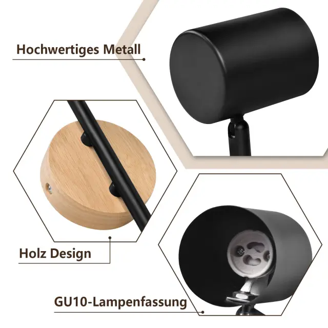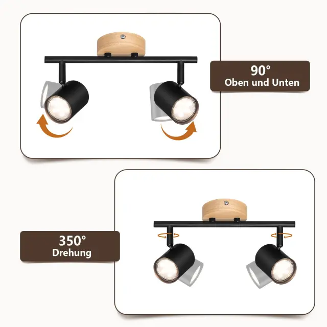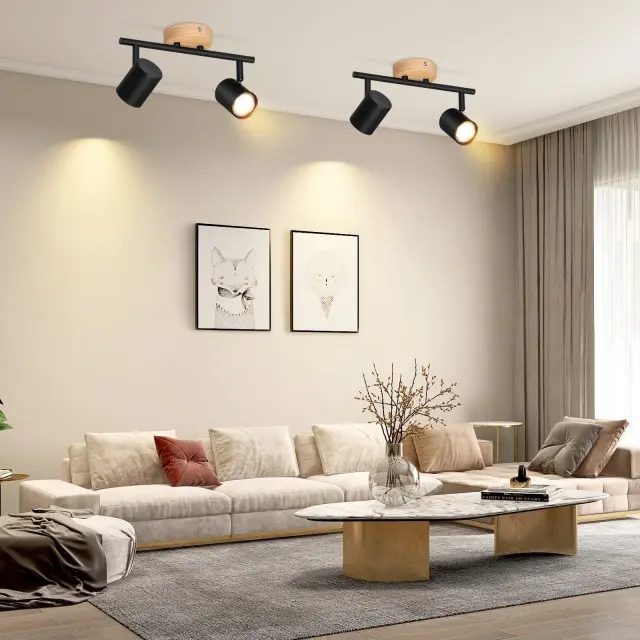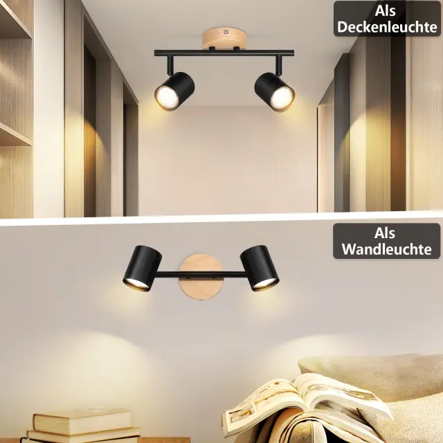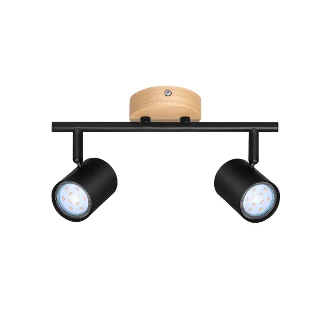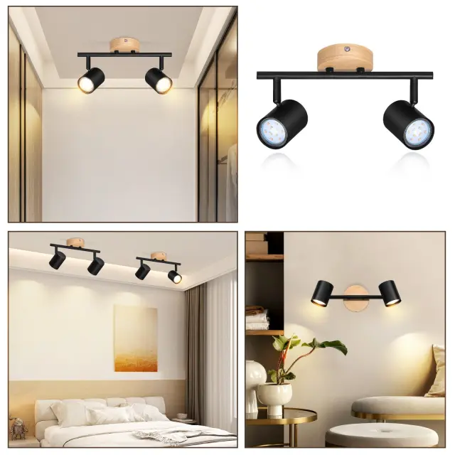 NETTLIFE LED stropna svetilka z 2 plamenoma - črna stropna svetilka GU10, vrtljiva, lesena, stenska svetilka, brez žarnice