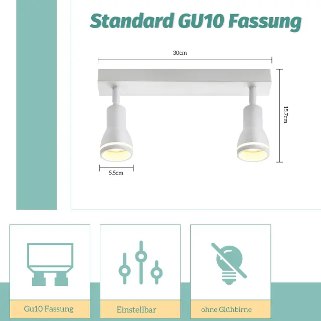 NETTLIFE LED stropna svetilka 2 žarnici bela stropna svetilka za dnevno sobo nastavljiva svetilka GU10 moderna svetilka