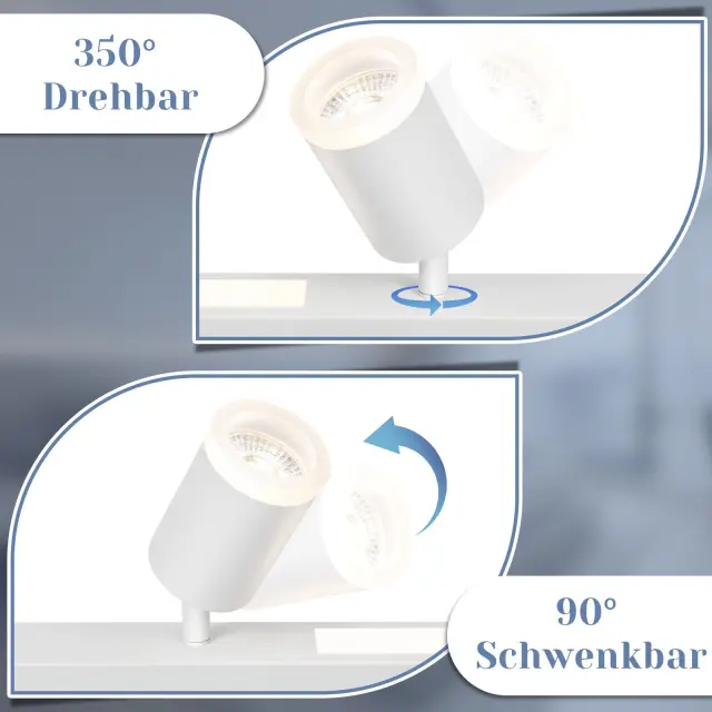 Ohišje luči omogoča prilagodljivo usmerjanje svetlobe, s 350-stopinjskim vrtenjem za različne kote osvetlitve. Tako lahko svetlobo prilagodite svojim potrebam in ustvarite želeno atmosfero v prostoru. LED stropna luč z belo svetlobo osvetli večji del prostora in ga naredi svetlejšega.