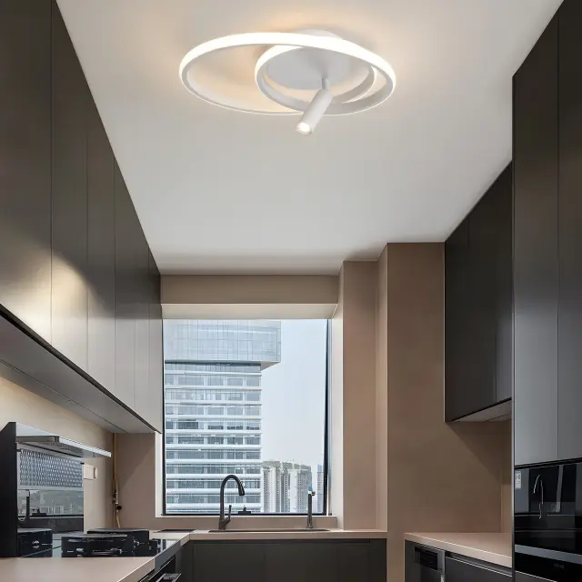 Moderen dizajn: Ta stropna svetilka je sestavljena iz dveh LED obročev in reflektorja, izdelanih iz visokokakovostne kovine in silikona, kar ji daje eleganten videz. Zatemnilna: Izbirate lahko med toplo belo, nevtralno belo in hladno belo, da barvo svetlobe prilagodite svojim željam in potrebam vsakega prostora. Daljinski upravljalnik: Z daljinskim upravljalnikom lahko osvetlitev prilagodite svojim potrebam: od tople in prijetne svetlobe do hladne in prefinjene svetlobe, bolj intenzivne ali bolj umirjene, odvisno od vašega razpoloženja. Visokozmogljiva osvetlitev: Z močjo 37 W in napajanjem 230 V ta model zagotavlja zadostno osvetlitev za vsak prostor. Enostavna namestitev in rokovanje: Ta stropna svetilka meri 40 x 40 x 12,5 cm, njena embalaža pa 44 x 44 x 13 cm, kar omogoča enostavno namestitev in transport brez kompromisov glede kakovosti.