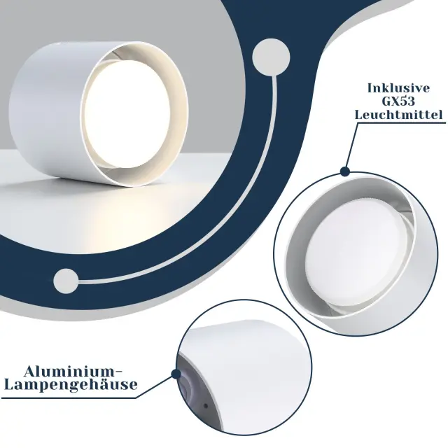 Materiali: Ta majhna stropna svetilka je izdelana iz robustnega aluminija in uporablja visokokakovostno žarnico GX53 z indeksom barvne reprodukcije nad 80. Je brez utripanja, brez bleščanja in prijetna za oči. Preprosta zasnova in priložena zamenljiva žarnica GX53 zagotavljata prijetno, toplo svetlobo z barvno temperaturo 3000 Kelvinov in ju odlikuje nizka poraba energije.