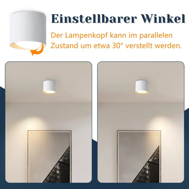Klasična oblika: Ta moderna stropna svetilka je vsestranska in se popolnoma prilega vsaki zasnovi prostora. Žaromet je mogoče zasukati za 30° in omogoča prilagodljivo osvetlitev. To vam omogoča, da prilagodite kot osvetlitve in območje svetlobe svojim potrebam ter posebej poudarite določena področja prostora.