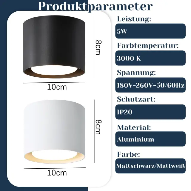 Energijsko učinkovita: Vgrajena žarnica GX53 z močjo 5 W zagotavlja toplo in prijetno svetlobo pri 3000 K ter ustvarja prijetno vzdušje. V primerjavi z običajnimi žarnicami varčuje z energijo in varuje okolje. Na izdelek ponujamo tudi 2-letno garancijo. Če imate kakršna koli vprašanja ali težave, vam bomo z veseljem pomagali.