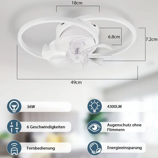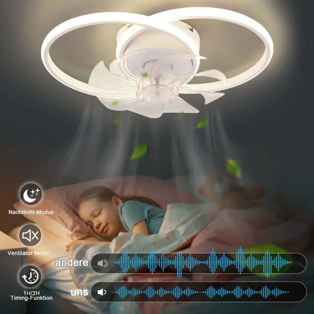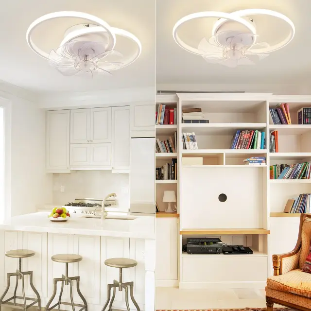 Moderen dizajn: Ta LED stropna svetilka z ventilatorjem, zasnovana v edinstveni obliki dvojnega obroča, v edinstvenem modernem slogu ne le ustvari posebno vzdušje v vaši dnevni sobi in spalnici, temveč tudi bolje okrasi vaš dom. Poleg tega je LED stropna svetilka izdelana iz visokokakovostnih LED čipov, ki zagotavljajo visoko prepustnost svetlobe, brez utripanja, enakomerno in mehko svetlobo, kar lahko bolje zaščiti oči vas in vaše družine.