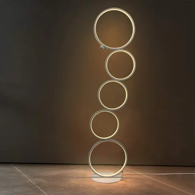 NETTLIFE LED talna svetilka, moderna bela, 32 W, toplo bela, stoječa svetilka na dotik s 5 obroči za dnevno sobo, pisarno