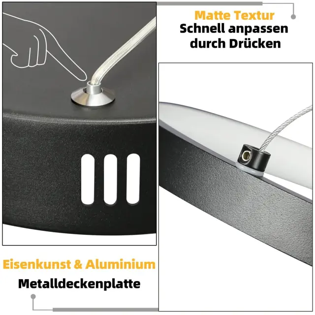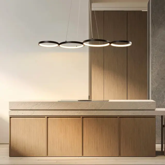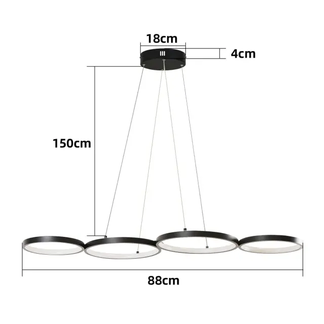 NETTLIFE LED viseča svetilka iz črnega aluminija, premer 150 cm, 54W, moderna svetilka s 4 obroči, zatemnilna jedilna svetilka