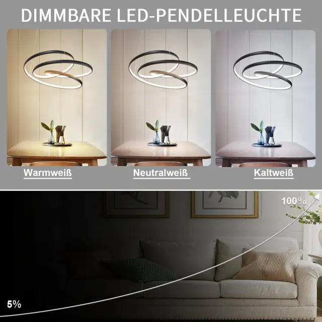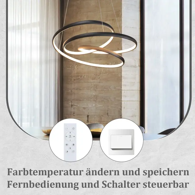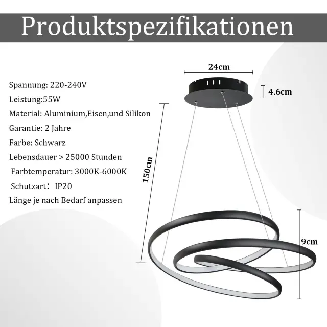 NETTLIFE LED viseča svetilka črna Diam.24cm Zatemnilna 50CM Moderna viseča svetilka z daljincem 55W
