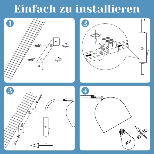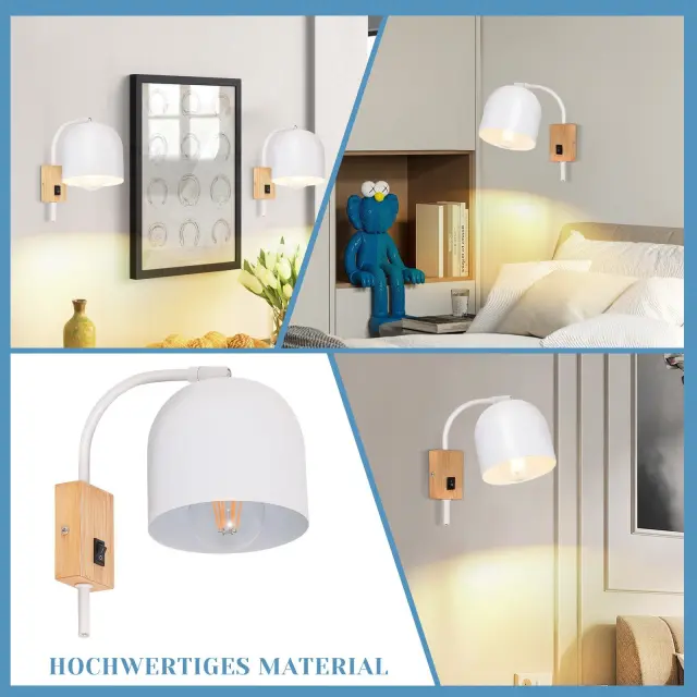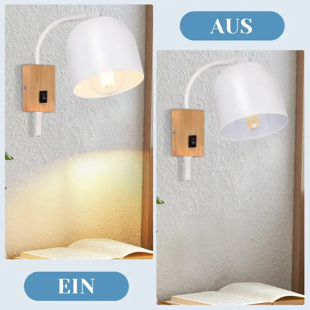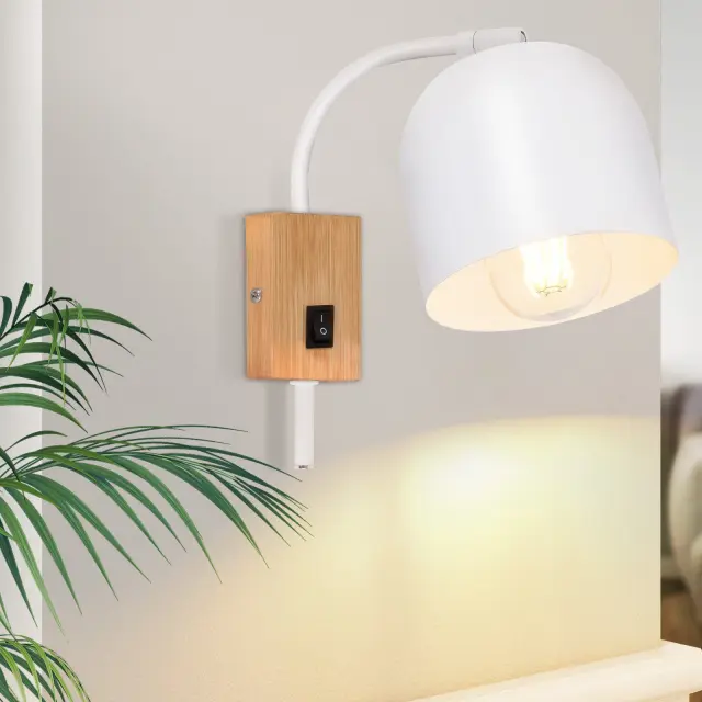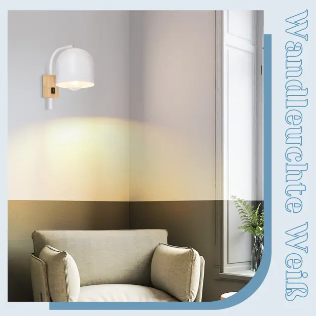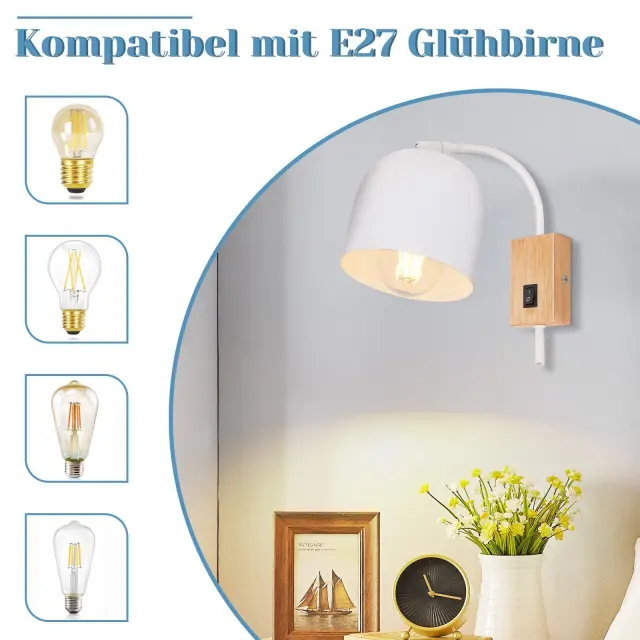 NETTLIFE Lesena stenska svetilka s stikalom - Stenska spot svetilka 1xE27 Bela Hodniška svetilka 330°, brez žarnice