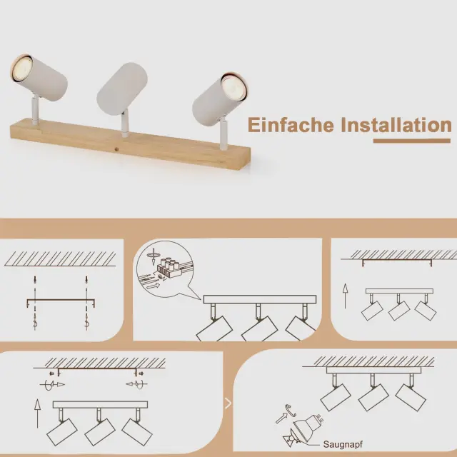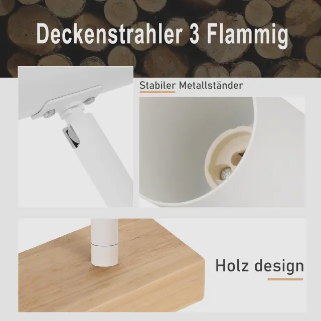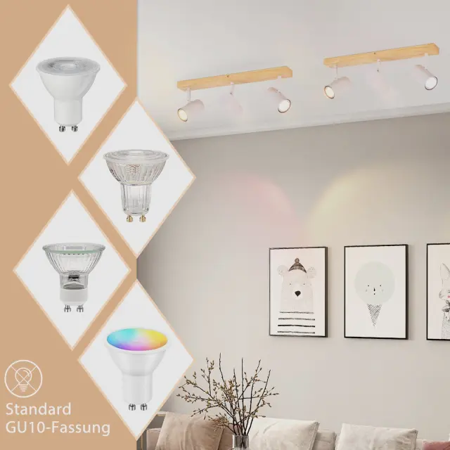 NETTLIFE lesena stropna GU10, 3 lučke, vintage bela, vrtljiva 350°, za hodnik, spalnico, sobo, pisarno, jedilnico, kuhinjo