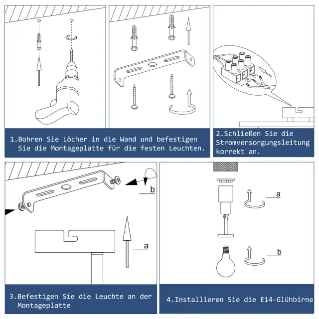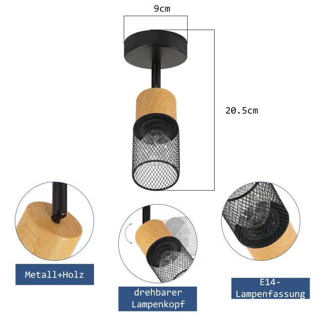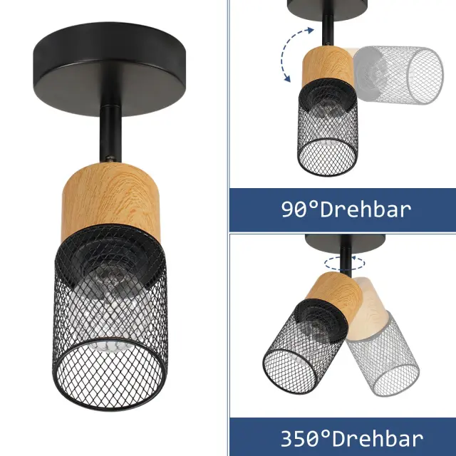 NETTLIFE Lesena stropna svetilka E14 Nastavljiva stenska svetilka Vintage kuhinjska svetilka