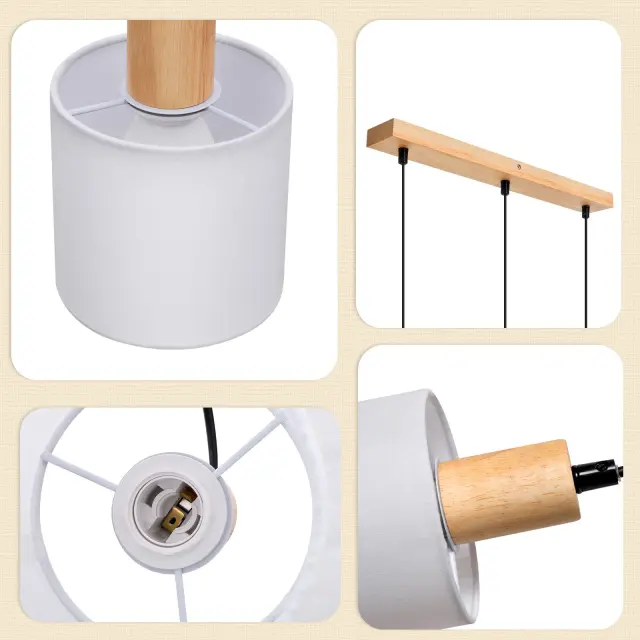 NETTLIFE Lesena viseča svetilka bela premera 47 cm E14 vintage rustikalna tkanina senčilo za restavracijo kuhinjo dnevno sobo pisarno