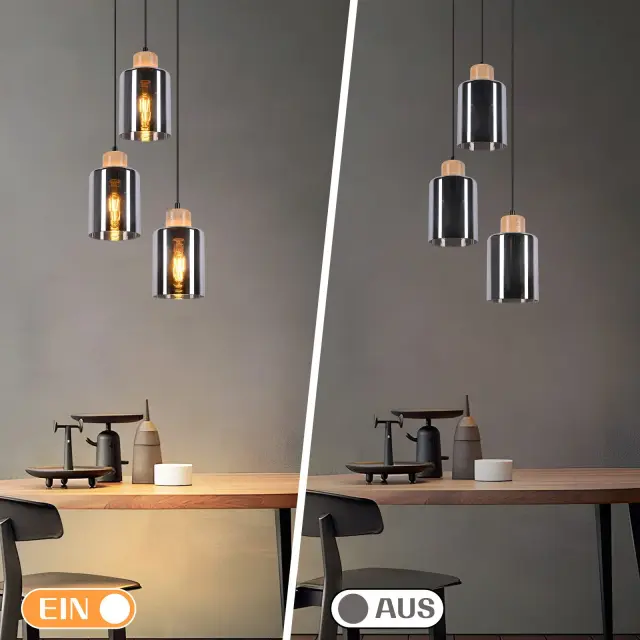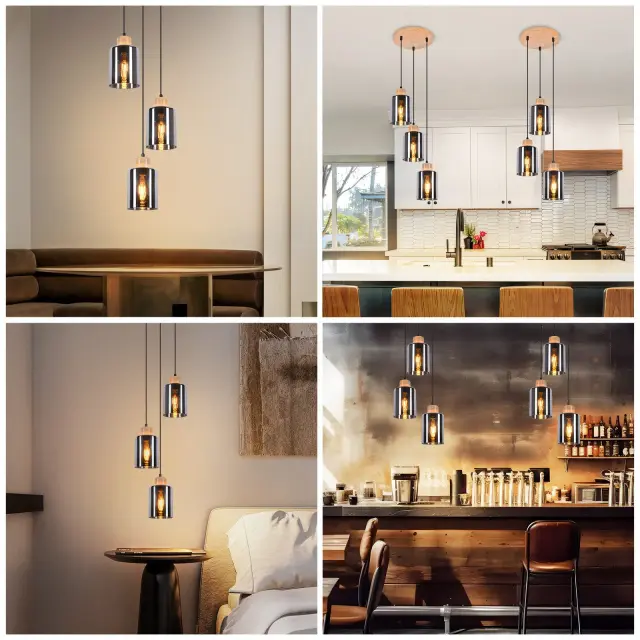Naravna eleganca z mešanico materialov: Ta viseča svetilka iz lesa in dimljenega sivega stekla združuje dva visokokakovostna materiala in ustvarja naravno elegantno obliko. Robustnost materialov in kakovost izdelave zagotavljata dolgo življenjsko dobo. Nastavitev višine za maksimalno prilagodljivost: Viseča svetilka je nastavljiva po višini do 120 cm, kar omogoča optimalno prilagoditev različnim višinam prostorov in notranjim slogom. Enostavna namestitev in prilagodljivo postavitev: Viseča svetilka je enostavna za montažo, nastavitev višine pa omogoča individualno prilagoditev vašim potrebam in prostoru. Industrijski čar za različna okolja: Ta viseča svetilka z industrijskim videzom se enako dobro poda tako v zasebne domove kot v kavarne, bare in restavracije. Je vsestranska, na primer nad jedilno mizo, v kuhinji ali na hodniku.