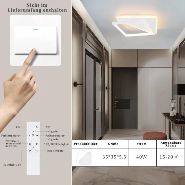 NETTLIFE Moderna 40W LED stropna svetilka za dnevno sobo, spalnico, zatemnljiva z daljinskim upravljalnikom, bela kuhinjska svetilka za hodnik