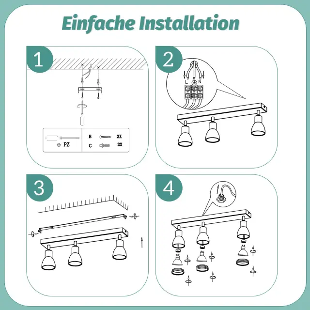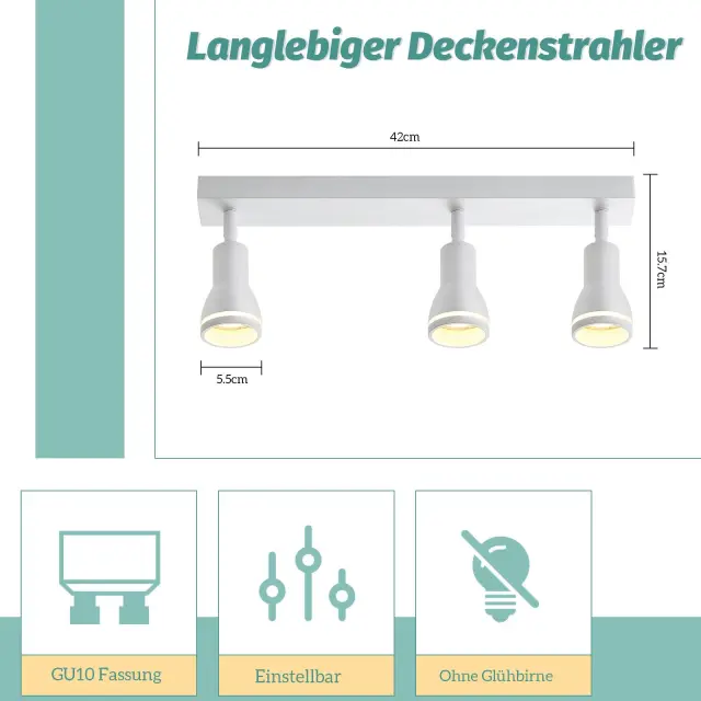 NETTLIFE Moderna bela stropna svetilka: 3 nastavljivi kovinski stropni reflektorji, stropna svetilka GU10, za spalnico, brez žarnice