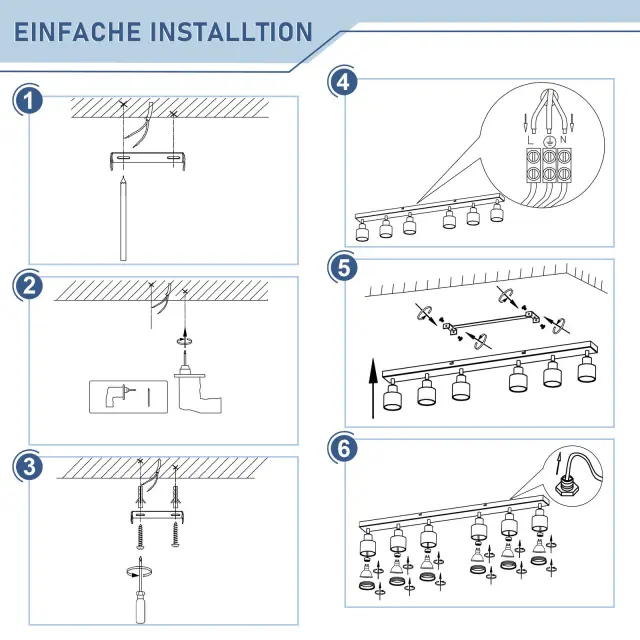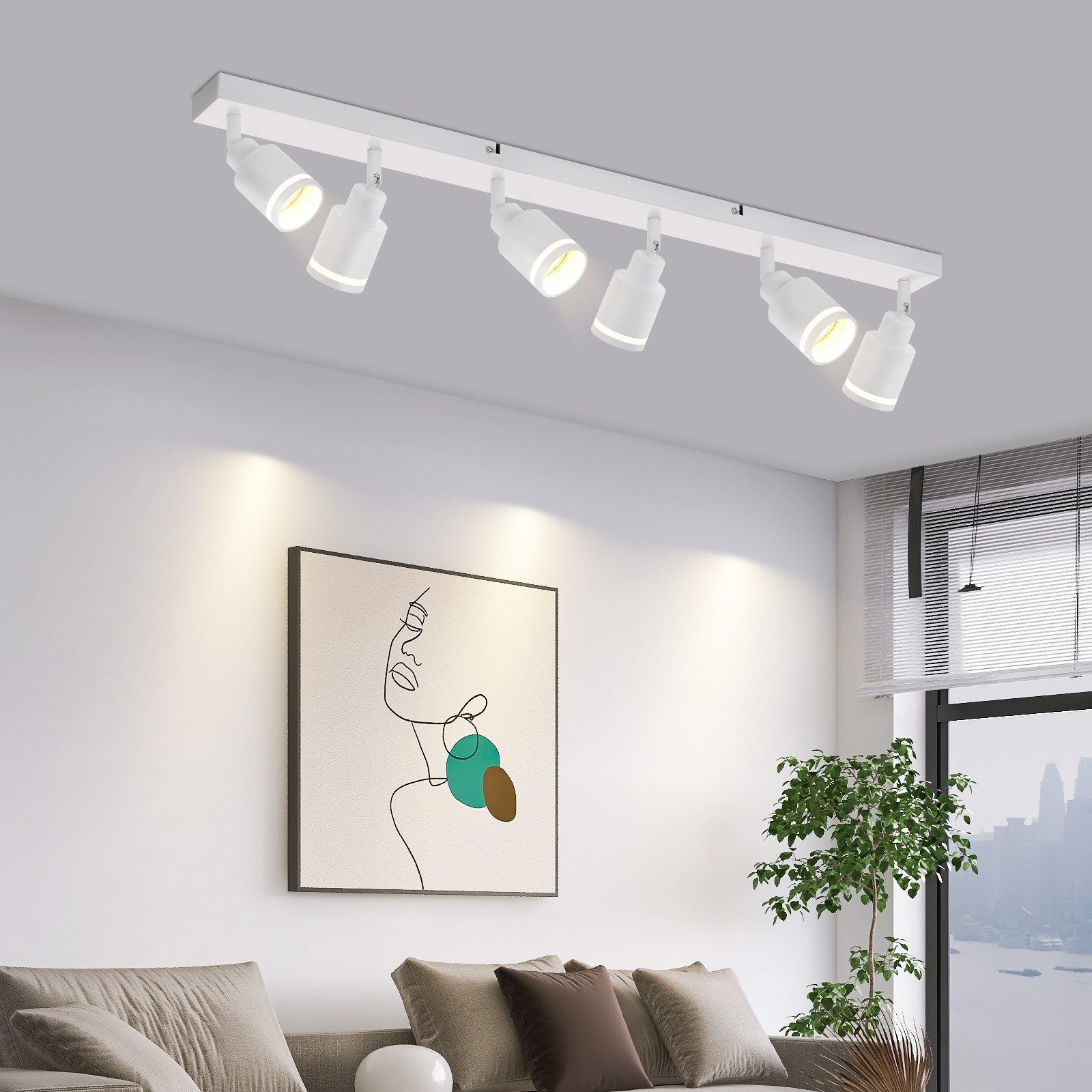 NETTLIFE Moderna bela stropna svetilka: 6 nastavljivih kovinskih stropnih reflektorjev, GU10 za spalnico, jedilnico, brez žarnice